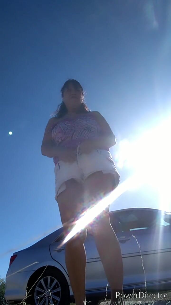 Peeing in the desert, wearing my soiled granny panties. Been wearing them for 4 days. Mature Latina