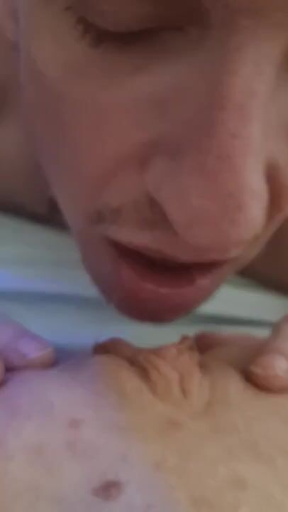 Shaved pussy eating out, licking and sucking hot wife's petite pussy