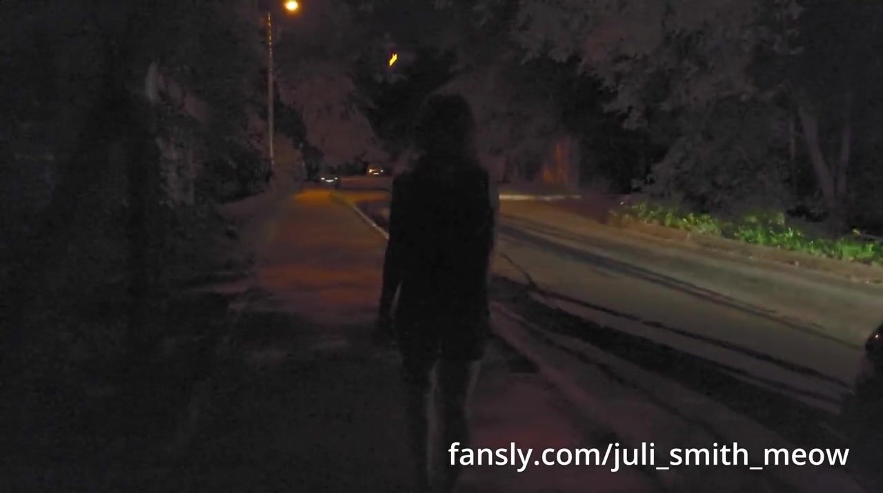 Girl walking in a transparent lace dress at night