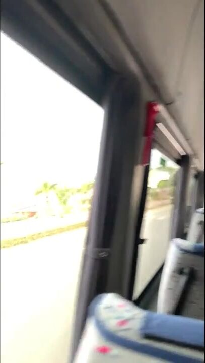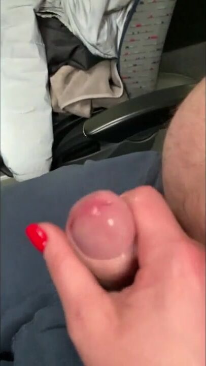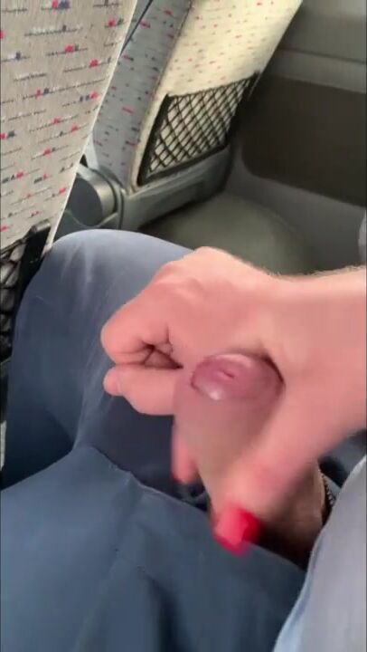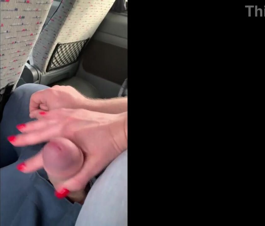 Almost got Caught Jerking off Husband's Cock on the Bus... but he still Cum