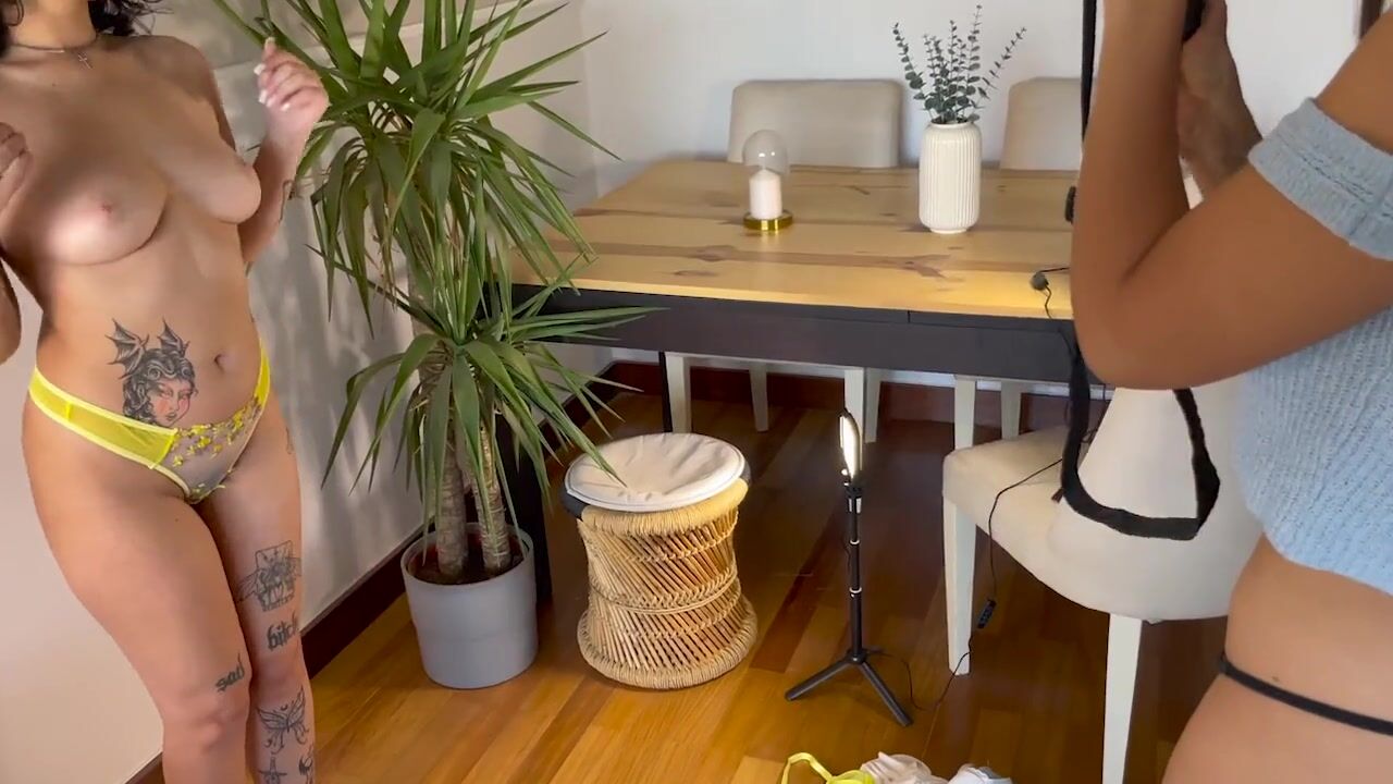 Two girls can't resist how hot it is and get naked during a photoshoot