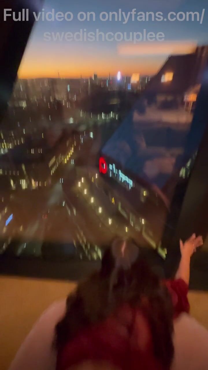 Stranger gets fucked against hotel window